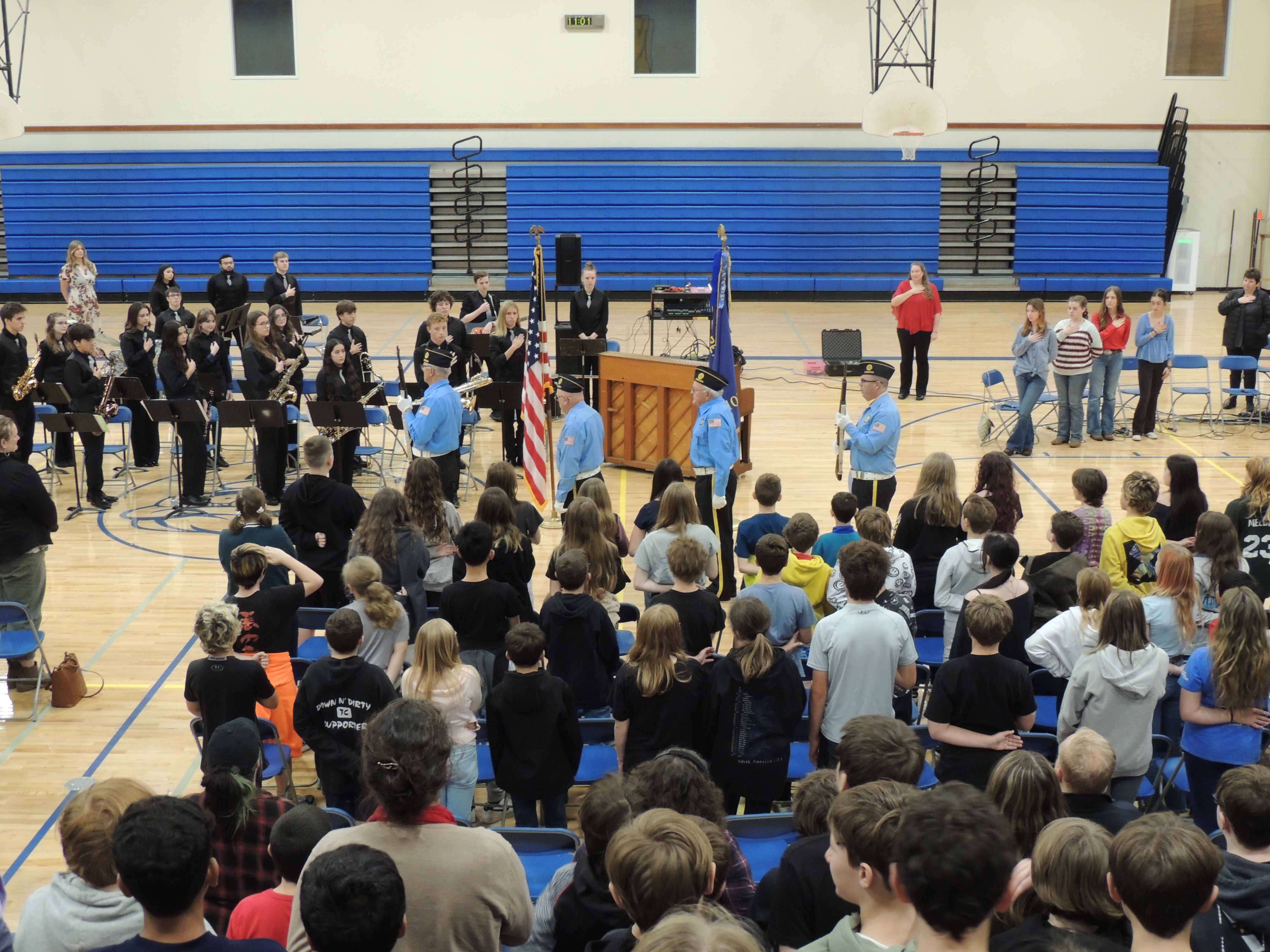 NBMS held our annual Veterans Day Assembly on Thursday, November 7th. Students, staff and families were entertained with wonderful music courtesy of our NBHS Jazz Band & Choir and NBMS Band students. Many thanks to Amber Yester, Janet Lea and Sarah Massey for leading our musical departments. We would also like to extend a huge thank you to Mr. Eric Stallings and members of the American Legion #34 for the Posting of the Colors. We are very grateful for them and their service to our country!